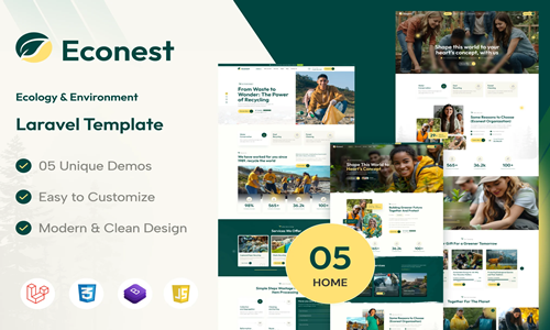 Econest – เทมเพลต Laravel สำหรับด้านนิเวศวิทยาและสิ่งแวดล้อม