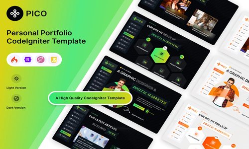 Pico – เทมเพลตพอร์ตโฟลิโอส่วนตัวสำหรับ CodeIgniterเป็นโซลูชันที่มีน้ำหนักเบา