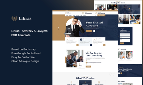 Libras คือเทมเพลต PSD สำหรับทนายความและสำนักงานกฎหมายที่ยอดเยี่ยม