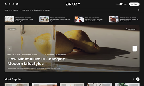Drozy – เทมเพลต HTML สำหรับบล็อกและนิตยสารสมัยใหม่
