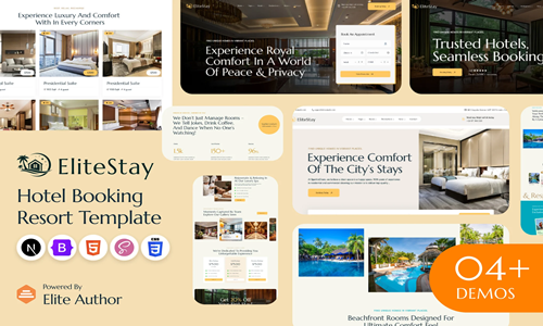 Js โหลดหน้าเว็บได้รวดเร็ว EliteStay เป็นเทมเพลตการจองโรงแรมและที่พักระดับพรีเมียม