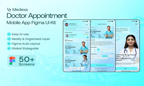 Medexa คือ UI Kit สำหรับแอปพลิเคชันมือถือนัดหมายแพทย์ที่ทันสมัยและได้รับการออกแบบอย่างมืออาชีพ