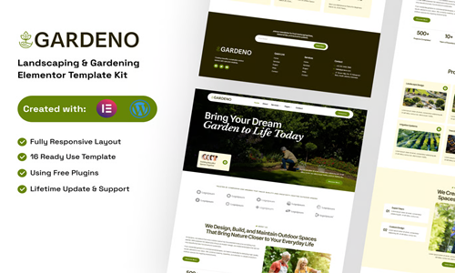 Gardenoคือชุดเทมเพลต Elementor สำหรับบริการจัดสวน