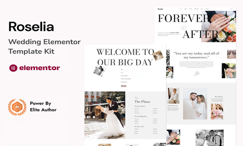 Roseliaคือชุดเทมเพลต Elementor สำหรับเว็บไซต์งานแต่งงาน