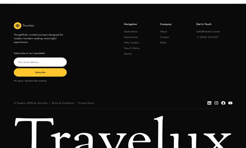 Travelux คือชุดเทมเพลต Elementor สำหรับสร้างเว็บไซต์บริษัททัวร์และการท่องเที่ยวได้อย่างรวดเร็วและง่ายดาย