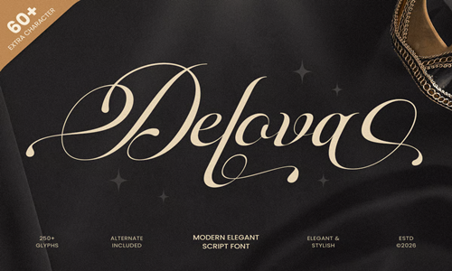 Delova ฟอนต์สคริปต์สมัยใหม่ที่ออกแบบมาเพื่อการเล่าเรื่องด้วยภาพระดับพรีเมียมและมีสไตล์