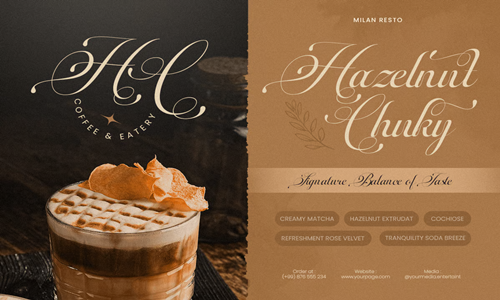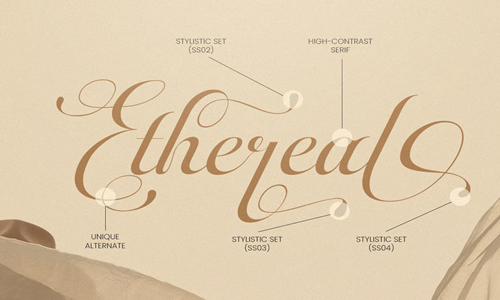และจังหวะการเขียนด้วยมือที่สมดุลอย่างสวยงาม แบบอักษรนี้สร้างโทนภาพที่พรีเมียม