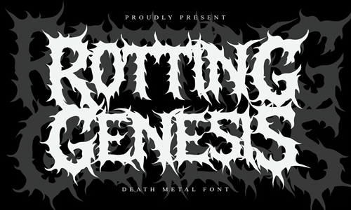 ขอแนะนำRotting Genesisฟอนต์แสดงผลสุดโหดที่ออกแบบมาเพื่อนำพลังดิบเถื่อนและไร้ระเบียบของวัฒนธรรมเพลงเมทัลใต้ดินมาสู่โปรเจกต์สร้างสรรค์สุดเร้าใจของคุณ