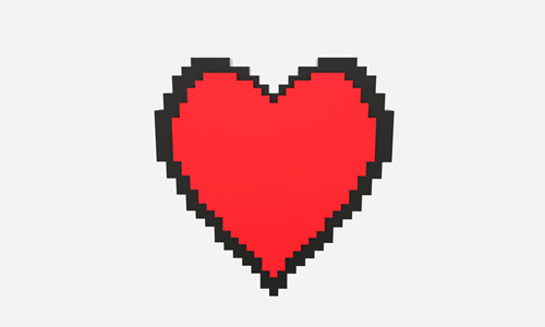 ภาพเรนเดอร์ 3 มิติคุณภาพสูงของรูปหัวใจแบบพิกเซล