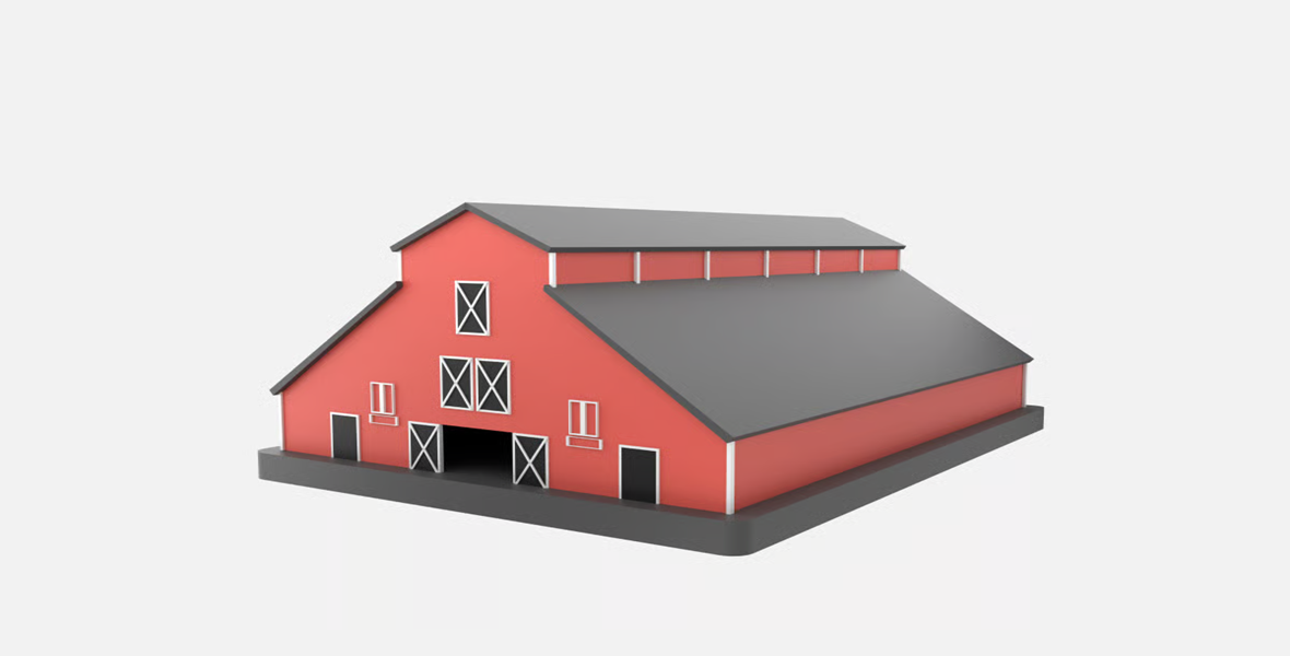 ภาพเรนเดอร์ 3 มิติคุณภาพสูงของโรงนาสีแดงอันเป็นเอกลักษณ์
