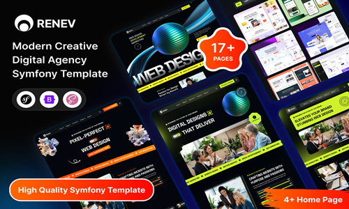 Renev – เทมเพลต Symfony สำหรับเอเจนซี่ดิจิทัลสร้างสรรค์สมัยใหม่เป็นโซลูชันที่เรียบหรู