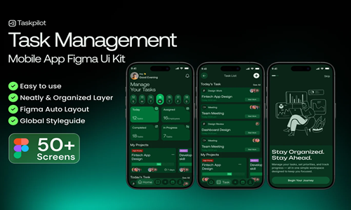 Taskpilot คือเทมเพลตออกแบบแอปพลิเคชันมือถือสำหรับจัดการงานและรายการสิ่งที่ต้องทำที่ทันสมัย