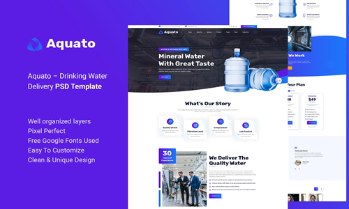 Aquato – เทมเพลต PSD สำหรับบริการจัดส่งน้ำดื่ม