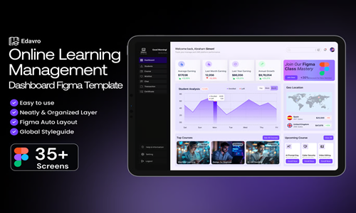 Edavro – เทมเพลต Figma สำหรับแดชบอร์ดการจัดการเรียนรู้แบบออนไลน์