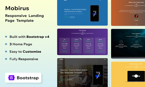 Mobirus – เทมเพลตหน้า Landing Page สำหรับแอปพลิเคชันที่ตอบสนองต่อทุกอุปกรณ์เป็นเทมเพลตที่ทันสมัย