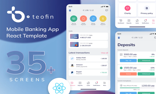 Teofin เป็นเทมเพลตแอปพลิเคชันธนาคารออนไลน์ที่สร้างด้วย